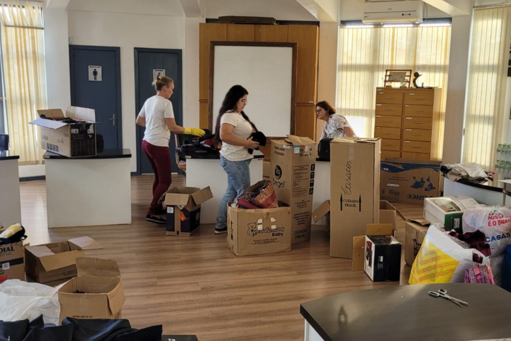 Hoje é o dia da triagem das doações feitas pela comunidade Selbachense na campanha Todos Pelo RS. Amanhã, dia 08, será o momento de destinar a primeira remessa à Defesa Civil do Estado, ajudando as famílias mais necessitadas.