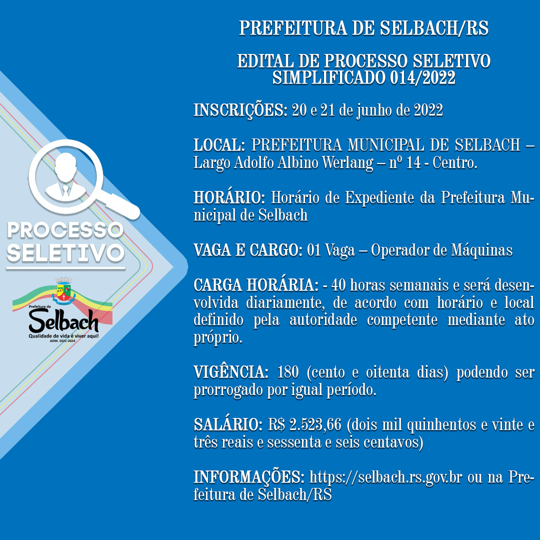 Mais informações em https://selbach.rs.gov.br/system/filemanager/files/concursos_anexos_154_525_1655490479.pdf