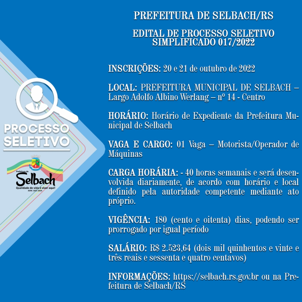 Mais informações em https://selbach.rs.gov.br/system/filemanager/files/concursos_anexos_157_557_1666101055.pdf