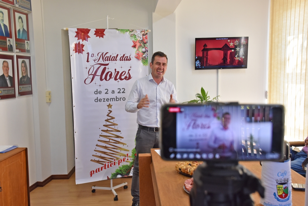 Na manhã desta terça-feira, 25 de outubro, ocorreu o lançamento do 1° Natal das Flores em um Café da Manhã com a Imprensa realizado na Prefeitura de Selbach, e com a apresentação da programação pelo prefeito Michael Kuhn. Conhecida como a Cidade das Flores e Princesa do Alto Jacuí, Selbach terá em 2022 a primeira edição deste evento natalino que coloca o Município no calendário estadual de festividades de Natal, com uma marca única e autêntica em todo Brasil.