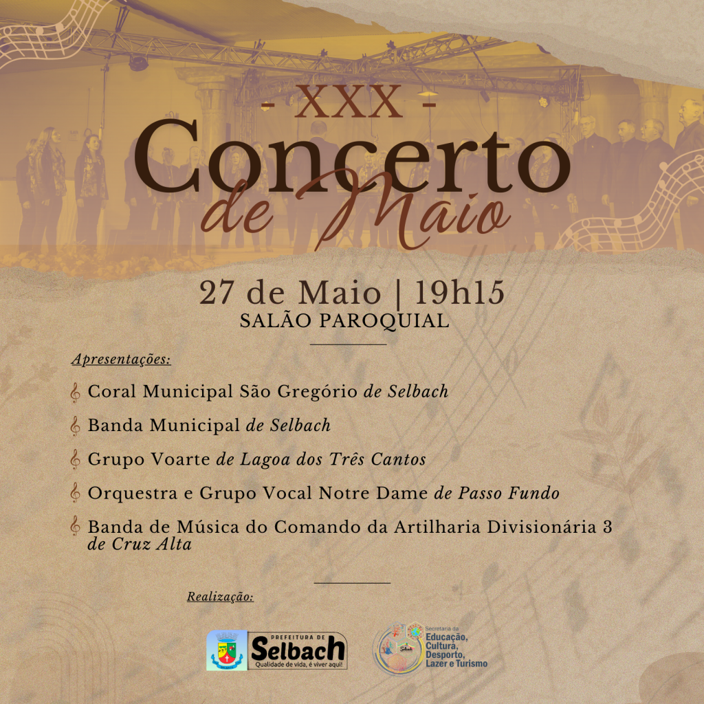 Marcado para o dia 27 de maio de 2023, o Concerto de Maio comemora este ano 30 anos. Um grande evento esta sendo preparado para comemorar esta data importante.