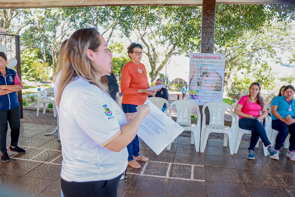 A importância do incentivo à amamentação foi reforçada pela Secretária Neida Hammes, que destacou o leite materno como o “alimento de ouro” fundamental para o desenvolvimento do bebê e para criar um vínculo especial com a mamãe.