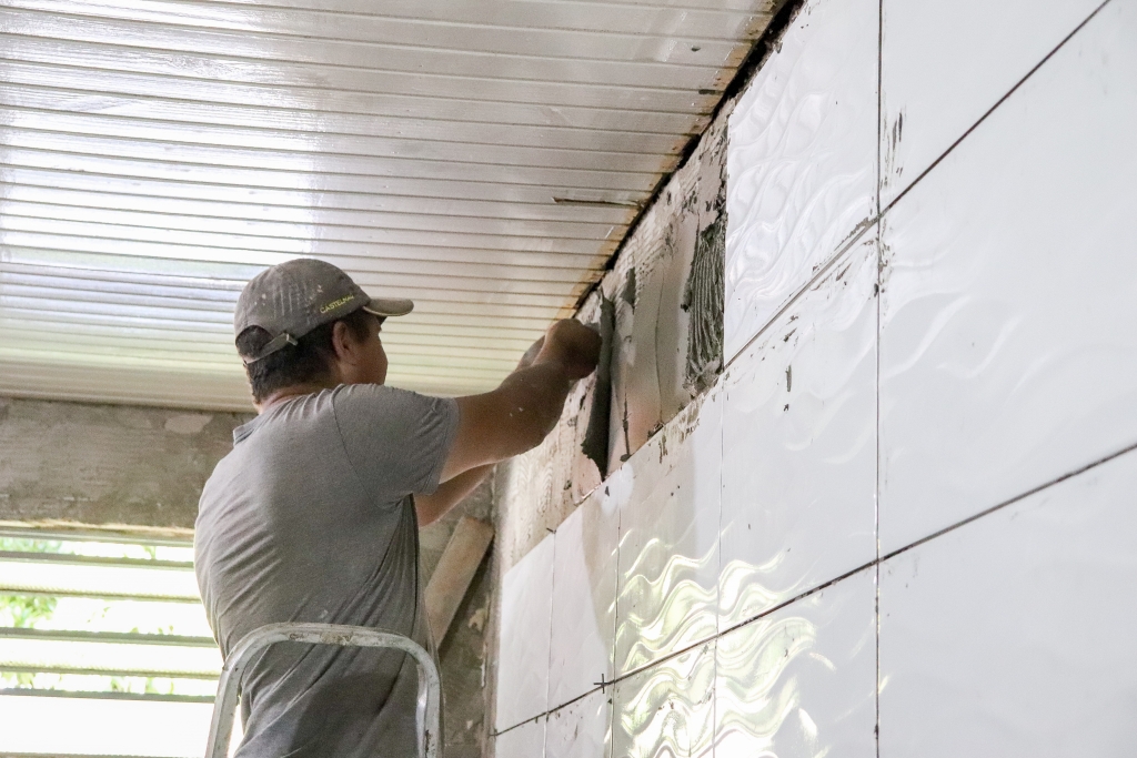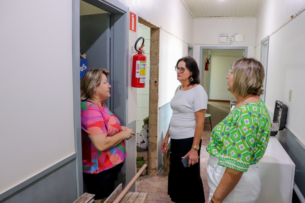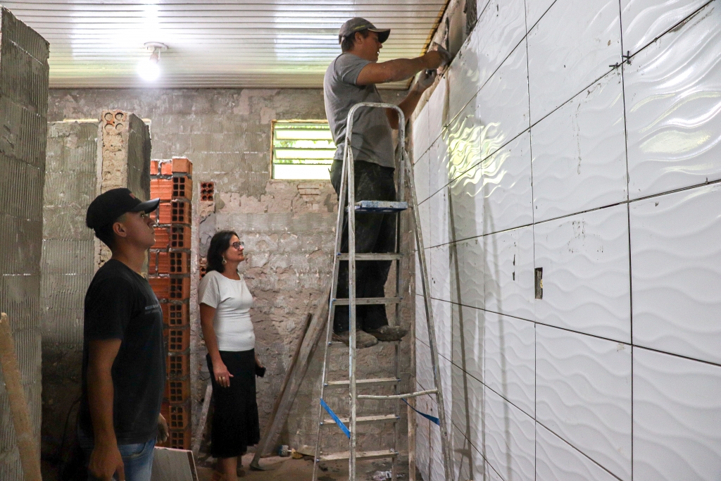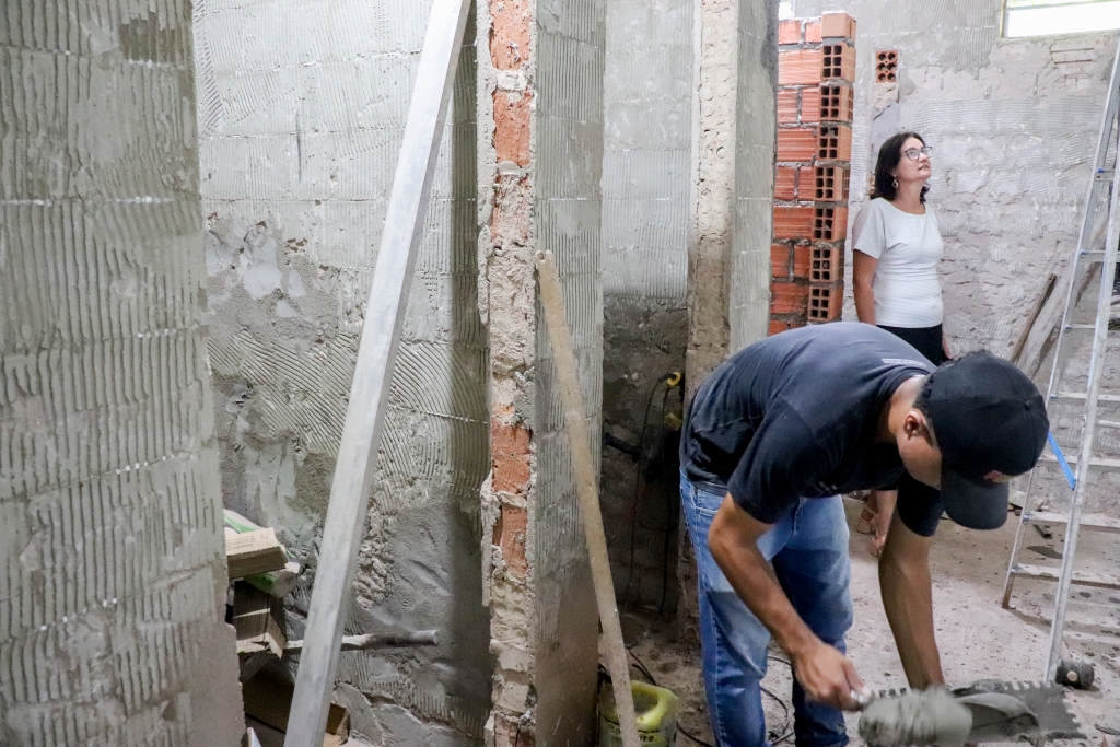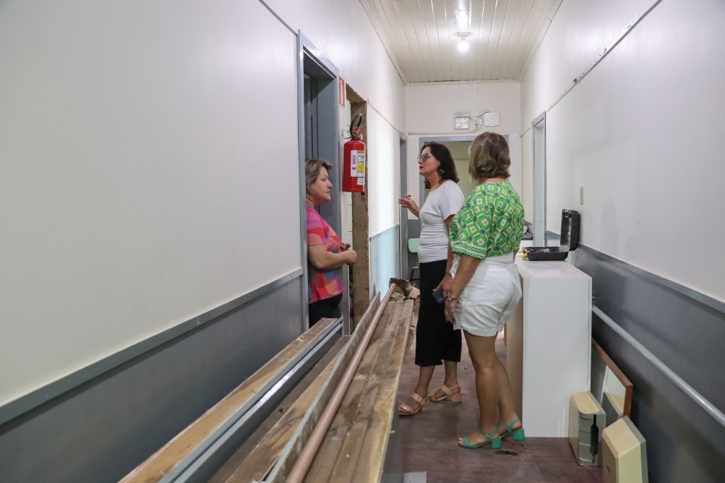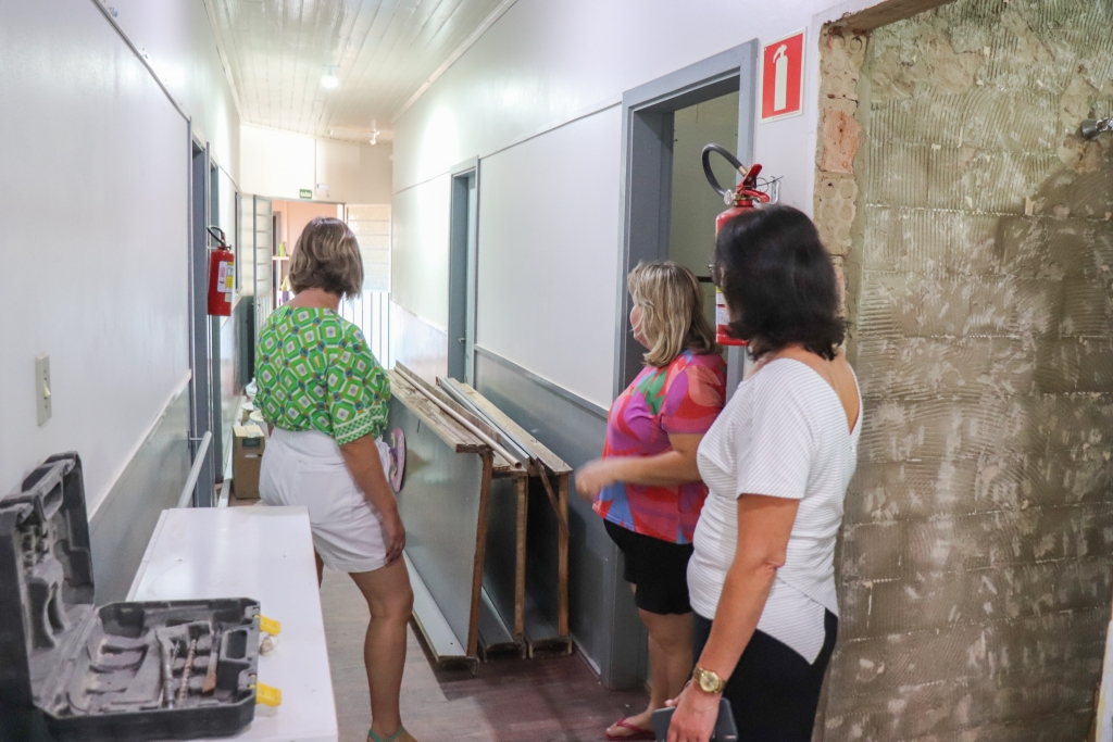 A Secretária Marta e a Coordenadora Ângela estiveram acompanhando de perto o andamento dos trabalhos na manhã desta terça-feira. Além da reforma do banheiro, que já havia sido adaptado no ano passado, outro banheiro também está passando por melhorias.