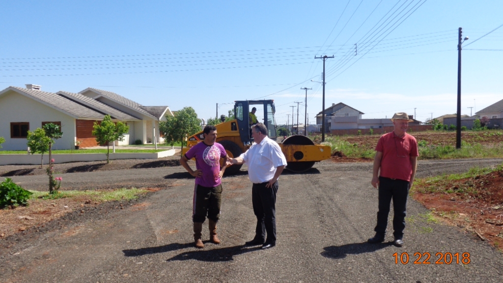 A Administração Municipal preocupada com o bem estar dos munícipes, na manhã de ontem (22), o Prefeito Sergio Ademir juntamente com o Secretário de Obras Euclides estiveram acompanhando os trabalhos que estão sendo realizados junto ao Bairro Santa Fé. O trabalho consiste em colocação de resíduo asfáltico nas ruas do bairro, objetivo este de amenizar temporariamente a situação dos moradores e aos que lá trafegam, ou seja, barro em dias de chuva, e poeira em dias de calor. Ainda está sendo aguardada uma verba que será destinada a colocação de calçamento do referido bairro.