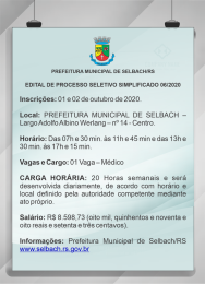 Informações: Prefeitura Municipal de Selbach/RS www.selbach.rs.gov.br